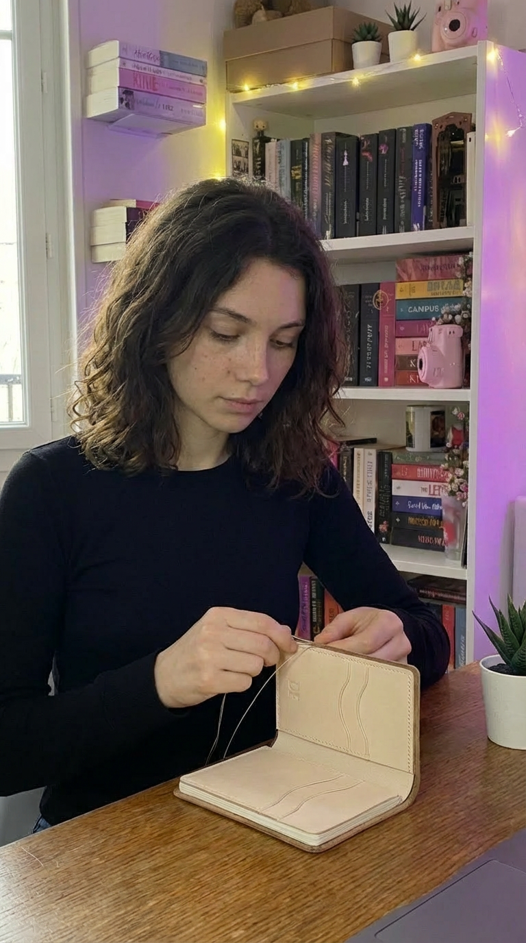 Chaque portefeuille-livre est fabriqué à la main en petites séries, de la découpe et de la couture jusqu’aux finitions finales. Je me concentre sur la qualité, le soin et la capture de l’apparence et du ressenti d’un vrai livre dans chaque pièce.